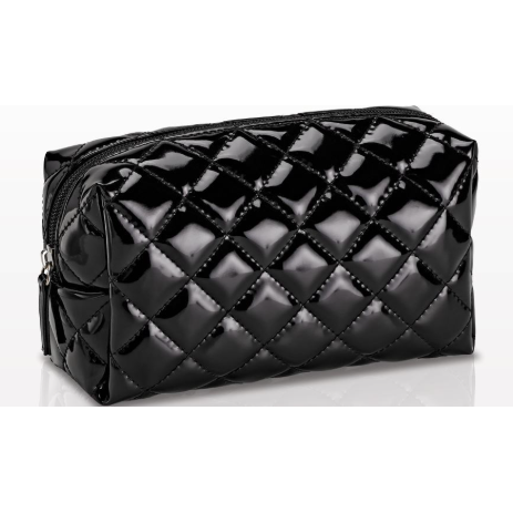 This elegant, black Quilted Small Cosmetic Bag is perfect for organizing your daily beauty essentials. With precise measurements, it ensures all your products fit securely without any wasted space. Keep your makeup neat and tidy on-the-go with style and convenience.